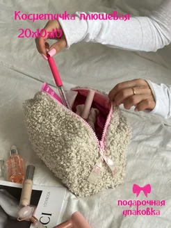 Косметичка плюшевая вместительная тедди на молнии