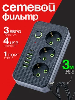 Сетевой удлинитель 3 м (3 x 220 4 USB 2.0 type C PD)