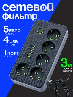 Сетевой удлинитель 3 м (5 x 220 4 USB 2.0 type C PD)