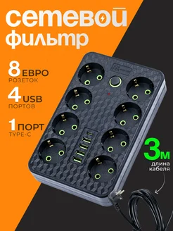 Сетевой удлинитель 3 м (8 x 220 4 USB 2.0 type C PD)