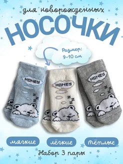 Носочки для новорожденных в упаковке в роддом 3 шт теплые
