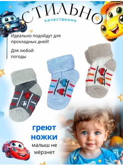 Носочки махровые для новорожденных мальчиков, 3 пары теплые
