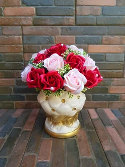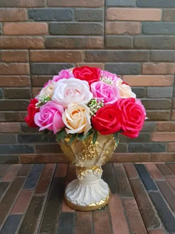 Большой букет из мыла в гипсовой вазе