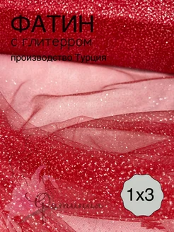 Фатин с глиттером, ткань сетка с блестками красный_53 1х3м