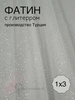Фатин с глиттером, ткань сетка с блестками белый_01 1х3м