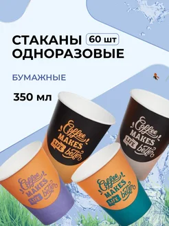 Стаканы одноразовые, 350 мл, 60 шт, с надписью