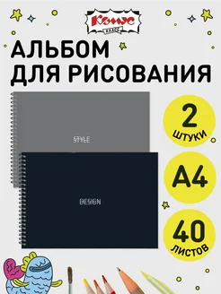 Альбом для рисования и скетчинга А4, 40 листов, 2 шт
