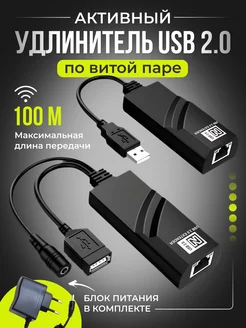 Активный удлинитель USB 2.0 по витой паре RJ45 до 100 метров