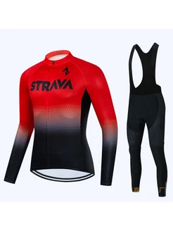 Велокостюм теплый с флисом штаны с лямками и велоджерси