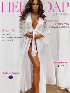 Пеньюар кружевной шелковый длинный большие размеры