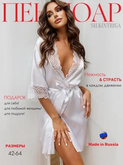 Пеньюар кружевной шелковый короткий большие размеры