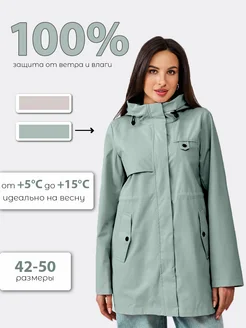 Ветровка удлиненная с капюшоном с кулиской весенняя