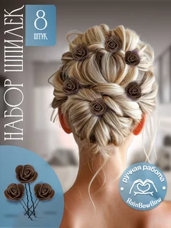 Шпильки с цветами из фоамирана коричневые