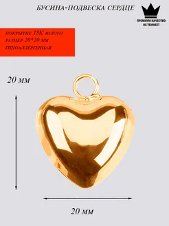 Бусина подвеска объемное сердце