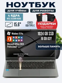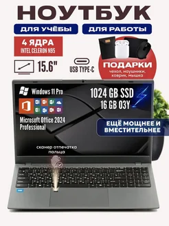 Ноутбук для работы и учебы 15,6" 4-ядра IPS 16Gb SSD 1024Gb