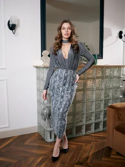 Юбка женская с пайетками и принтом змеи