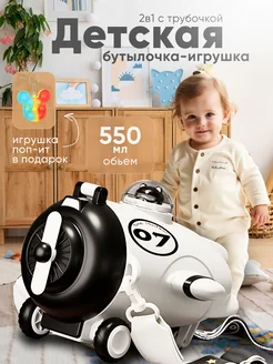 Поильник детский с трубочкой 2в1, бутылочка-игрушка самолёт