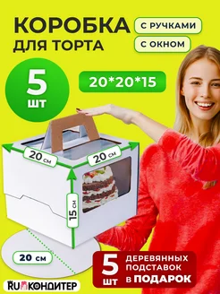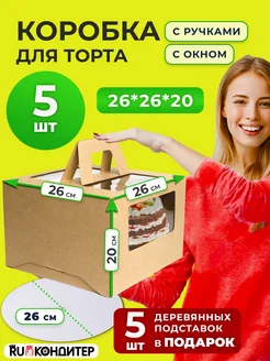 Набор коробок для торта с деревянной подставкой, 5 шт