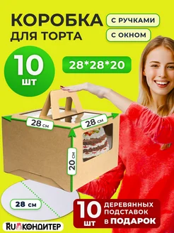 Набор коробок для торта с деревянной подставкой, 4 шт