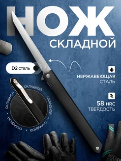 Нож складной D2 с клинком танто, ABS-рукоятью и клипсой