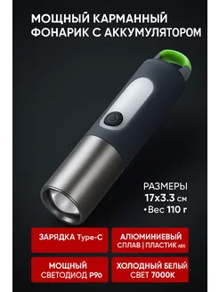 Фонарь аккумуляторный мощный 1000 люмен с Zoom светодиодный