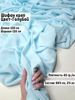 Ткань креп-шифон голубой 130×150 см для одежды и декора