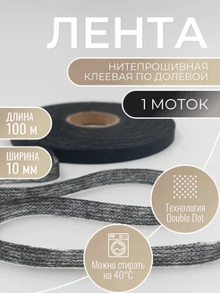 1х Лента нитепрошивная клеевая по долевой черная 10 мм 100 м
