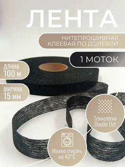 1х Лента нитепрошивная клеевая по долевой черная 15 мм 100 м