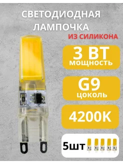 Светодиодная лампочка G9 из силикона, 3 Вт, 4200K (5 шт.)