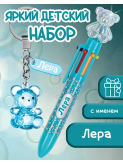 Именной подарок для Леры брелок и многоцветная ручка