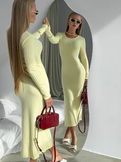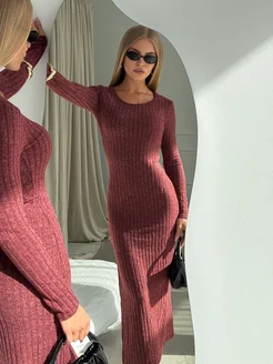 Трикотажное платье на осень в рубчик с длинным рукавом