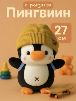 Мягкая игрушка обнимашка Пингвин в желтой шапочке, 27 см