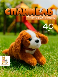 Мягкая игрушка собака в ошейнике 40 см, коричневая