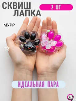 Сквиш 2 шт, таба лапка, антистресс черная-фуксия ЛИПКАЯ