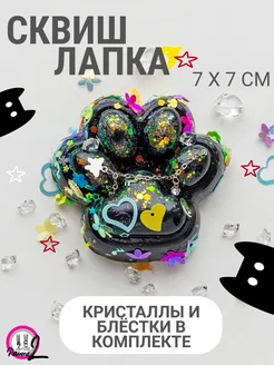 Сквиш, таба лапка, антистресс черная с кристаллом