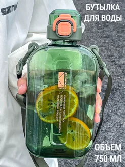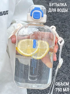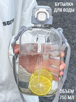 Бутылка для воды спортивная 750 мл. плоская с ремешком