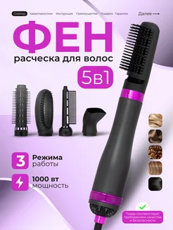 Фен расческа для волос 5 в 1 объем выпрямление 1000 Вт