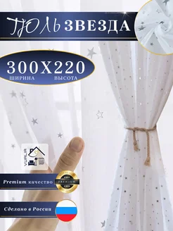 Тюль в спальню гостиную 300х220 под лен со звездами