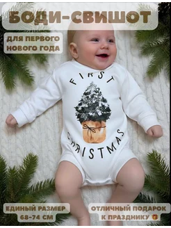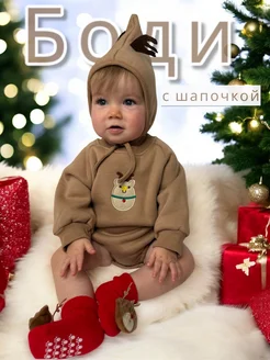 Боди свитшот с шапочкой новогодний оверсайз для малышей