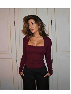 Бордовый лонгслив кружева