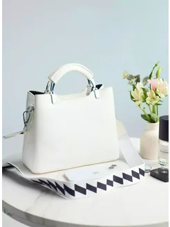 Сумка кожаная белая со сменным ремнем