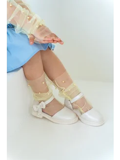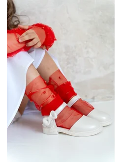 Прозрачные нарядные носочки для девочек из фатина с бусинами