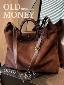 Сумка шоппер замшевая коричневая через плечо, тоут а4