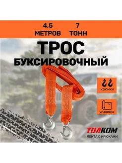 Трос буксировочный для автомобиля, нагрузка 7т. длина 4,5м