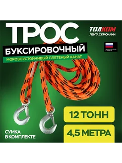 Трос буксировочный для автомобиля, нагрузка 12т, длина 4,5м