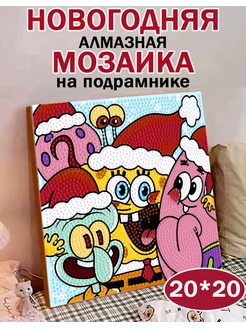 Алмазная мозаика для детей Губка Боб и друзья новогодняя