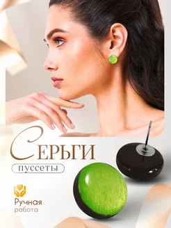 Серьги пуссеты 15 мм круглые зеленый металлик