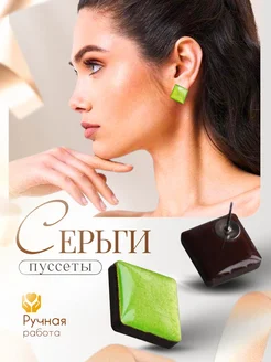 Серьги пуссеты 15 мм квадратные зеленый металлик