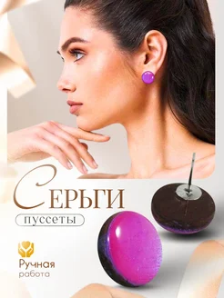Серьги пуссеты 15 мм темно-фиолетовый металлик