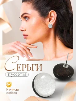 Серьги пуссеты 15 мм жемчужный белый